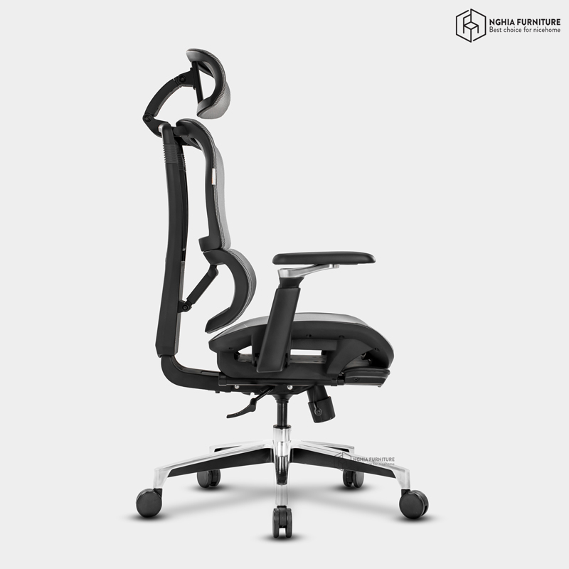Để giúp cho việc nghỉ ngơi, thư giãn dễ dàng hơn ghế công thái học Lumbar được thiết kế thêm tựa đầu với khả năng điều chỉnh 4D nâng hạ, cụp ngửa và tịnh tiến 3 cm. Hỗ trợ tốt hơn trong quá trình làm việc, đốt sống cổ được nâng đỡ và hỗ trợ chống mỏi.