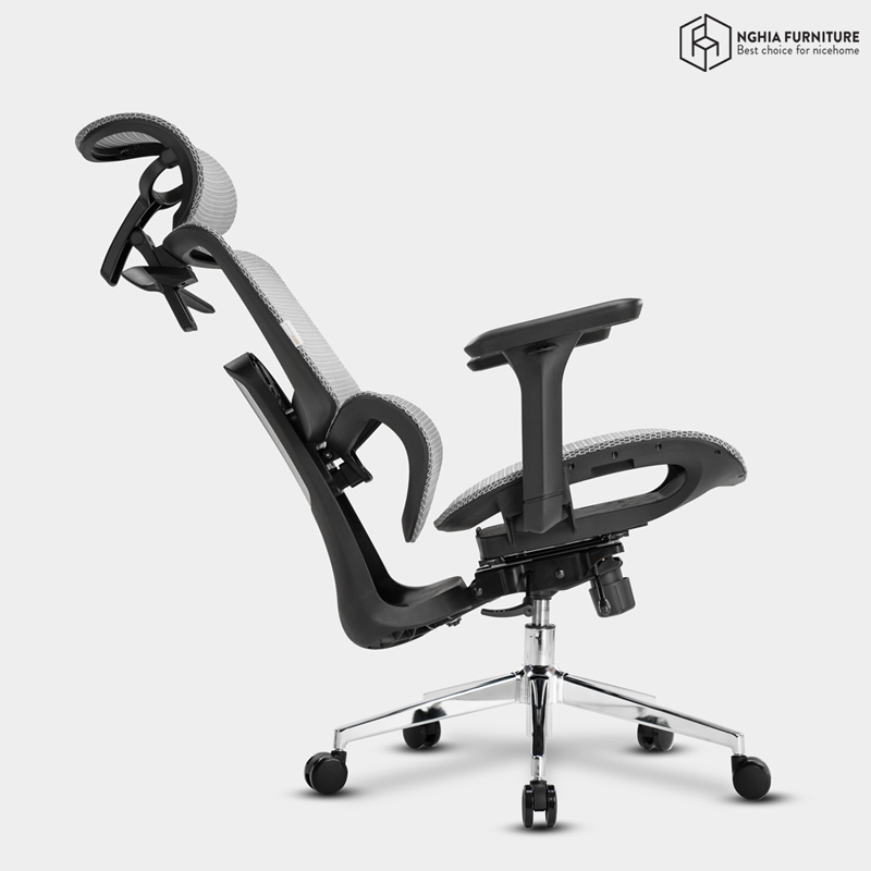 Tựa đầu điều chỉnh linh hoạt theo 3 hướng: nâng – hạ, cụp – ngửa, và trượt tiến – lùi, hỗ trợ tối đa phần cổ và gáy theo nhiều tư thế ngồi khác nhau. Dù làm việc hay ngả lưng thư giãn, bạn đều tìm được vị trí tựa thoải mái và chính xác nhất.