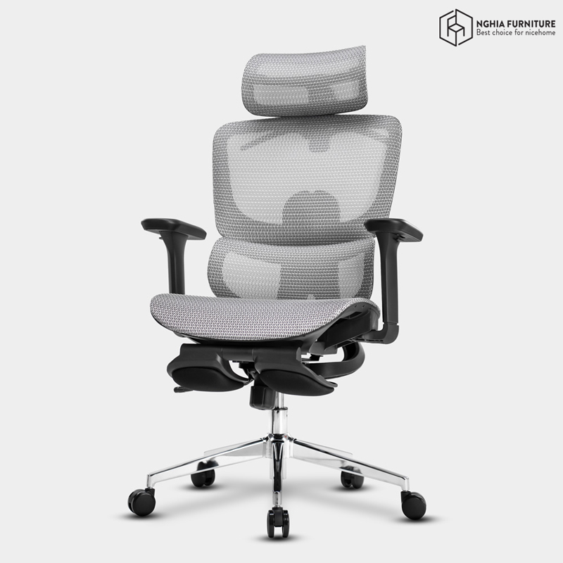 Toàn bộ mặt ngồi và lưng ghế được phủ lưới Đài Loan cao cấp – thoáng khí, đàn hồi tốt và bền bỉ theo thời gian. Chất liệu này giúp hạn chế tích nhiệt, chống xẹp lún và mang đến cảm giác mát mẻ suốt cả ngày dài ngồi làm việc.