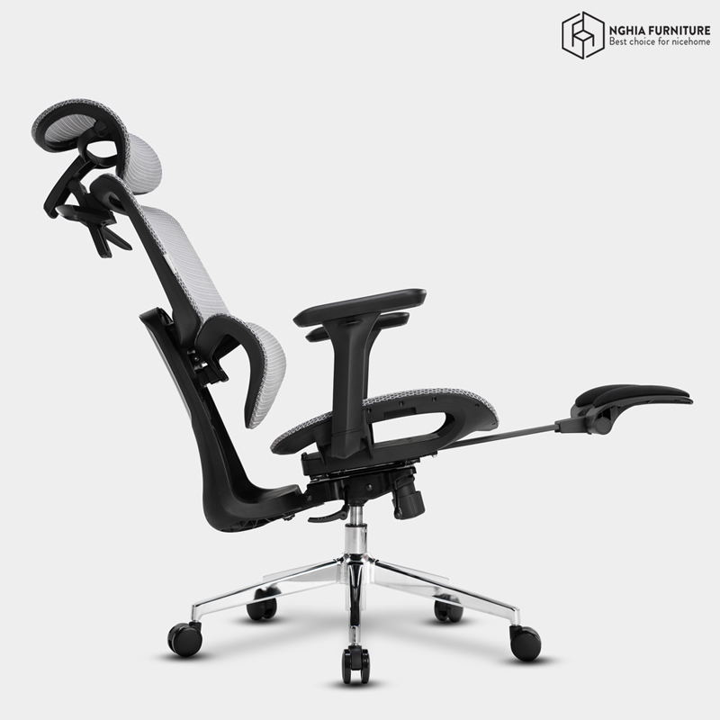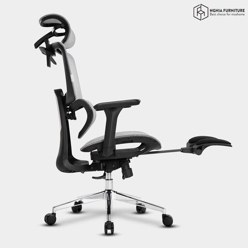 Tựa đầu điều chỉnh linh hoạt theo 3 hướng: nâng – hạ, cụp – ngửa, và trượt tiến – lùi, hỗ trợ tối đa phần cổ và gáy theo nhiều tư thế ngồi khác nhau. Dù làm việc hay ngả lưng thư giãn, bạn đều tìm được vị trí tựa thoải mái và chính xác nhất.