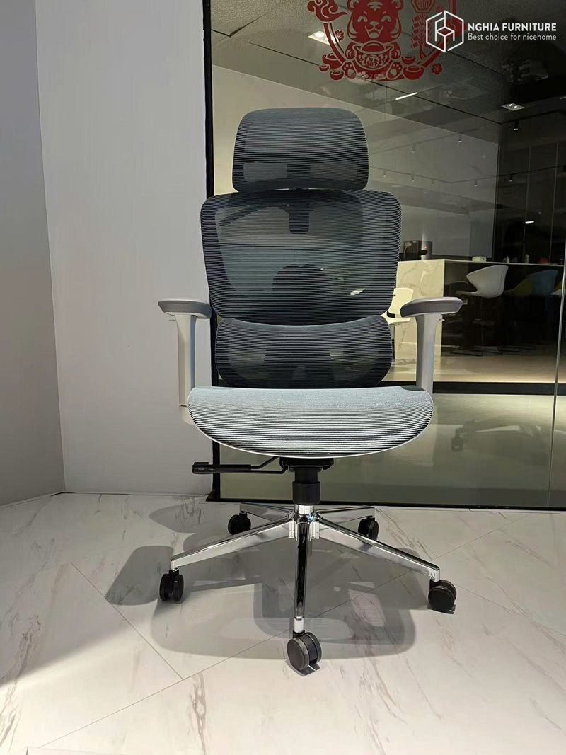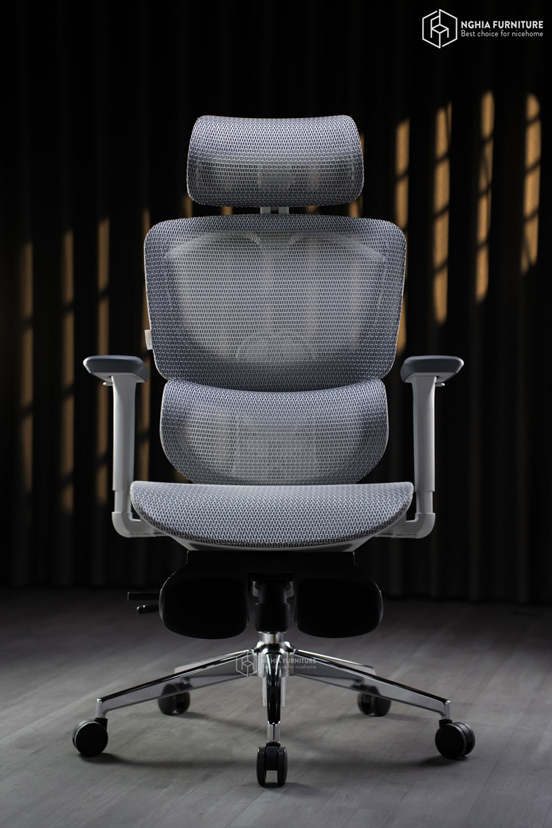 Toàn bộ mặt ngồi và lưng ghế được phủ lưới Đài Loan cao cấp – thoáng khí, đàn hồi tốt và bền bỉ theo thời gian. Chất liệu này giúp hạn chế tích nhiệt, chống xẹp lún và mang đến cảm giác mát mẻ suốt cả ngày dài ngồi làm việc.