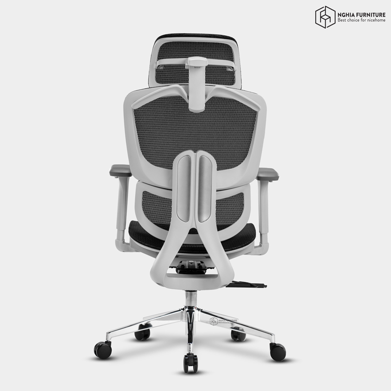 Thiết kế tựa lưng đôi tách biệt giúp ôm trọn phần lưng và phân bổ lực đều hơn, hỗ trợ hiệu quả vùng cột sống từ L1–L5. Nhờ cơ chế linh hoạt, tựa lưng bám theo chuyển động cơ thể, giữ tư thế ngồi chuẩn trong nhiều giờ mà không gây đau mỏi.