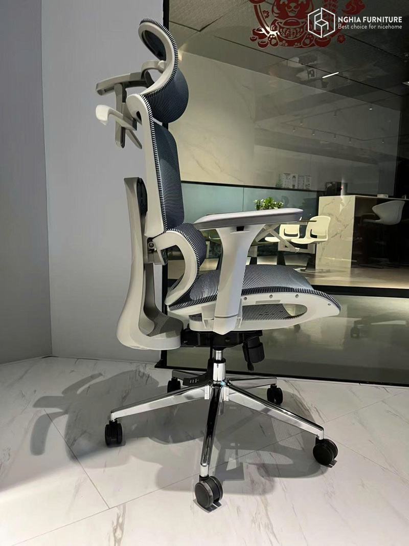 Tựa đầu điều chỉnh linh hoạt theo 3 hướng: nâng – hạ, cụp – ngửa, và trượt tiến – lùi, hỗ trợ tối đa phần cổ và gáy theo nhiều tư thế ngồi khác nhau. Dù làm việc hay ngả lưng thư giãn, bạn đều tìm được vị trí tựa thoải mái và chính xác nhất.