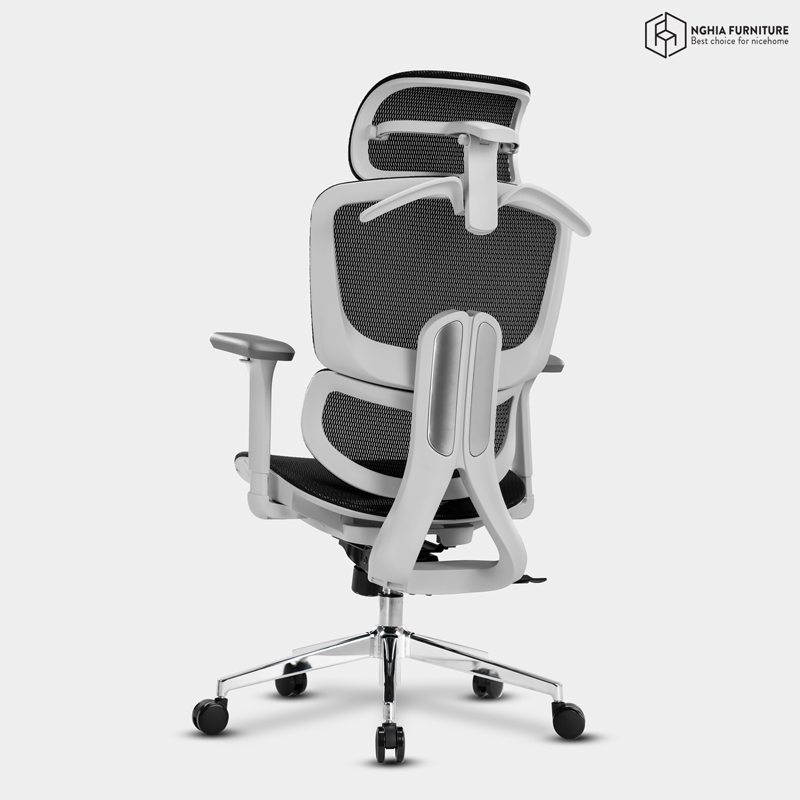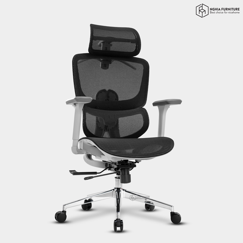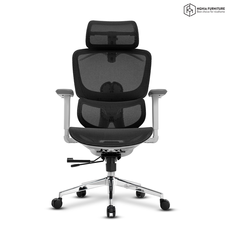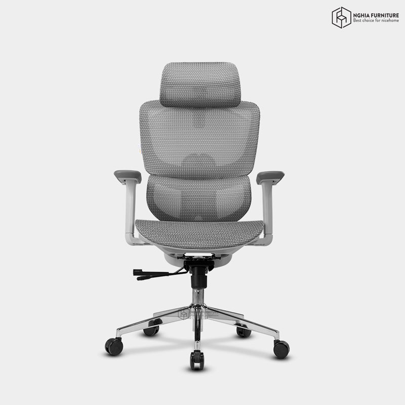 Toàn bộ mặt ngồi và lưng ghế được phủ lưới Đài Loan cao cấp – thoáng khí, đàn hồi tốt và bền bỉ theo thời gian. Chất liệu này giúp hạn chế tích nhiệt, chống xẹp lún và mang đến cảm giác mát mẻ suốt cả ngày dài ngồi làm việc.