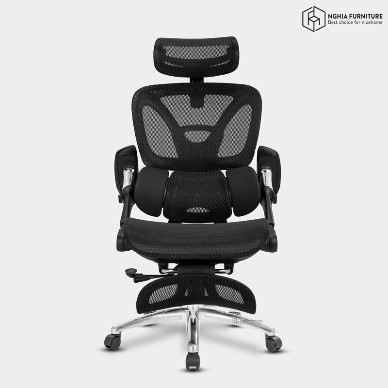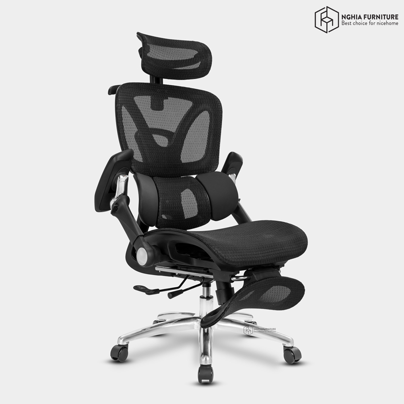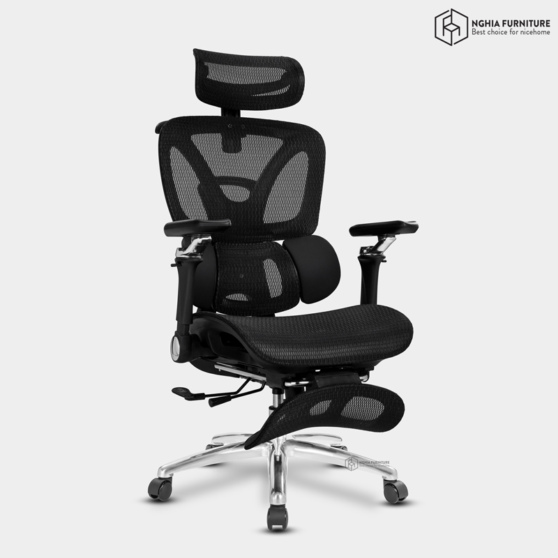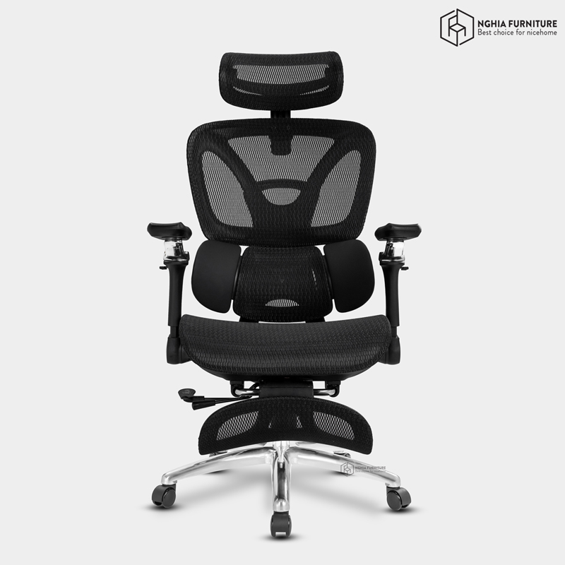Ghế công thái học Ergonomic 09 Đen- Gác chân