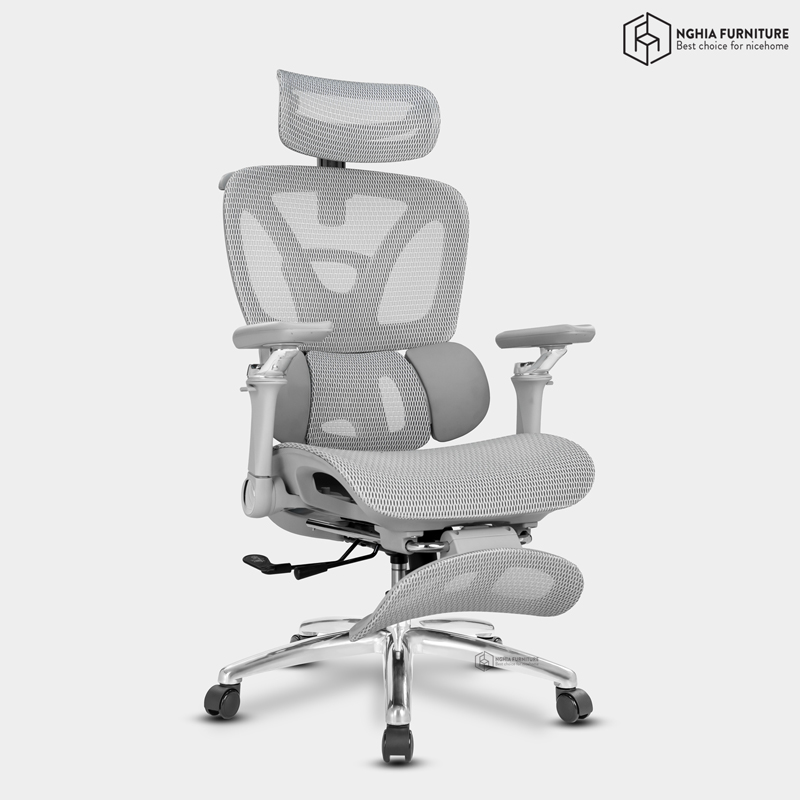 Ghế công thái học Ergonomic 09 Xám- Gác chân