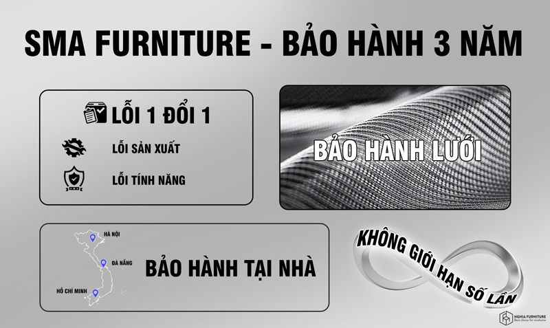 Đây là cam kết mạnh mẽ từ giúp khách hàng hoàn toàn yên tâm khi lựa chọn. Với chính sách này, bạn không chỉ mua một chiếc ghế, mà còn nhận được sự đảm bảo về chất lượng và dịch vụ hậu mãi hàng đầu.