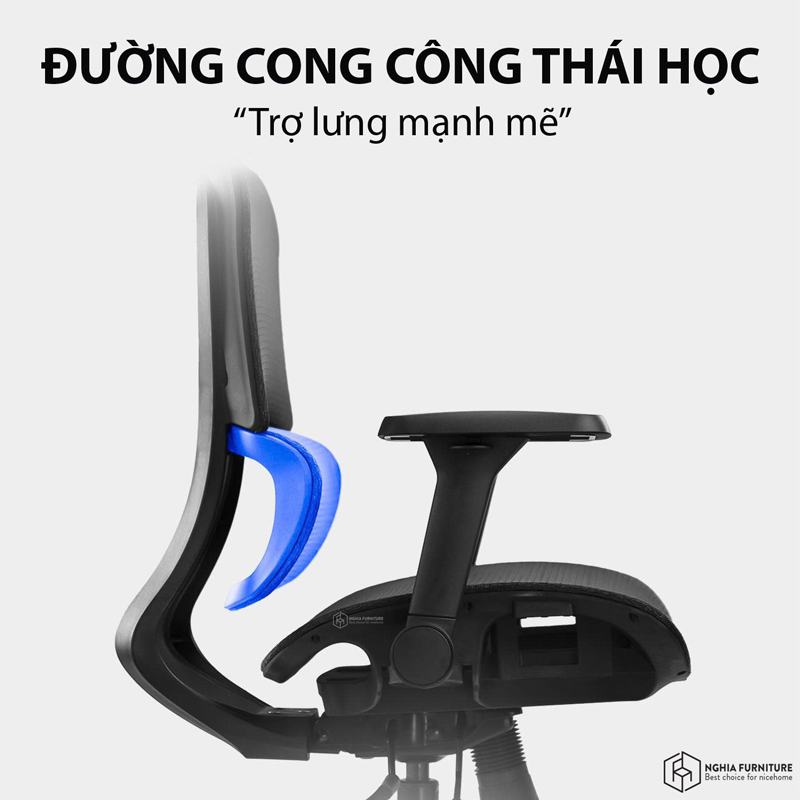 Phần tựa lưng sử dụng hệ thống hỗ trợ thắt lưng đàn hồi (Elastic Lumbar Support), giúp ôm sát đường cong cột sống, giảm đau mỏi lưng dưới khi ngồi lâu. Cơ chế đàn hồi này còn tự điều chỉnh theo chuyển động cơ thể, đảm bảo tư thế ngồi luôn chuẩn.