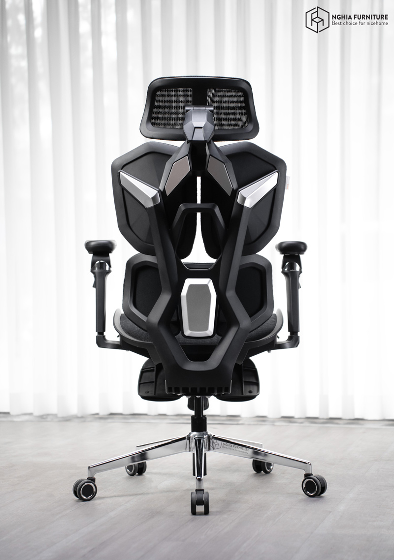 Ghế Gaming-X sở hữu khung ghế đen mạnh mẽ, kết hợp lưới cao cấp bao phủ toàn bộ tựa lưng, đệm ngồi và tựa đầu. Thiết kế này không chỉ tạo cảm giác thoáng khí mà còn mang lại vẻ ngoài hiện đại, cao cấp. Tổng thể mang hơi hướng cá tính, năng động, giúp chiếc ghế gaming dễ dàng hòa hợp với cả không gian làm việc nghiêm túc lẫn góc giải trí.