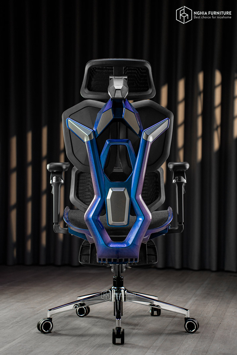 Ghế Gaming-X sở hữu khung ghế đen mạnh mẽ, kết hợp lưới cao cấp bao phủ toàn bộ tựa lưng, đệm ngồi và tựa đầu. Thiết kế này không chỉ tạo cảm giác thoáng khí mà còn mang lại vẻ ngoài hiện đại, cao cấp. Tổng thể mang hơi hướng cá tính, năng động, giúp chiếc ghế gaming dễ dàng hòa hợp với cả không gian làm việc nghiêm túc lẫn góc giải trí.