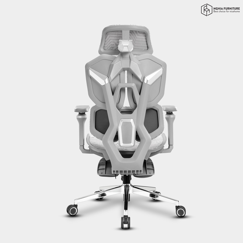 Ghế Gaming-X sở hữu khung ghế đen mạnh mẽ, kết hợp lưới cao cấp bao phủ toàn bộ tựa lưng, đệm ngồi và tựa đầu. Thiết kế này không chỉ tạo cảm giác thoáng khí mà còn mang lại vẻ ngoài hiện đại, cao cấp. Tổng thể mang hơi hướng cá tính, năng động, giúp chiếc ghế gaming dễ dàng hòa hợp với cả không gian làm việc nghiêm túc lẫn góc giải trí.