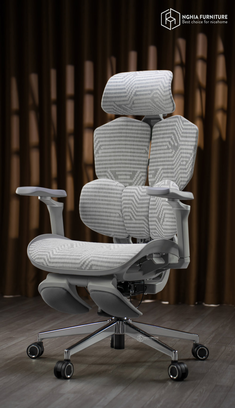 Toàn bộ phần tựa và đệm ngồi sử dụng chất liệu lưới DuPont cao cấp từ Mỹ, co giãn 4 chiều và đàn hồi lên đến 83%. Chất liệu này không chỉ thoáng khí vượt trội – cực kỳ phù hợp với khí hậu nóng ẩm – mà còn thân thiện với làn da, không gây bí. Lưới dày, kết cấu chắc chắn giúp ghế giữ được độ căng, không chảy xệ hay biến dạng sau thời gian dài sử dụng.