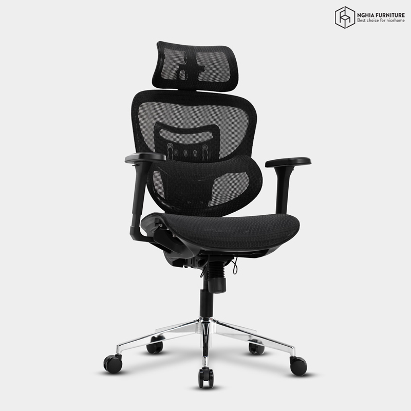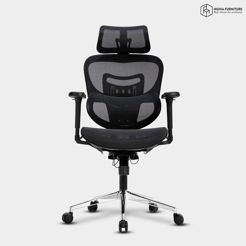Toàn bộ phần lưng và đệm ngồi được làm từ lưới Đài Loan nhập khẩu, nổi bật với độ thông thoáng, đàn hồi cao và độ bền vượt trội. Chất liệu này giúp người ngồi luôn cảm thấy mát mẻ, không bí bách kể cả khi làm việc trong môi trường nóng hoặc phải ngồi nhiều giờ liền. Lưới căng chắc, ít xẹp lún – đảm bảo độ bền lâu dài và dễ dàng vệ sinh.
