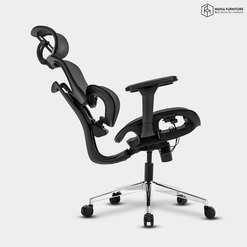 Hệ thống tay vịn 4D cho phép người dùng điều chỉnh theo 4 hướng: lên/xuống, trước/sau, trái/phải và xoay góc. Nhờ đó, ghế luôn đồng hành cùng bạn trong mọi tư thế ngồi – từ đánh máy, họp hành cho đến thư giãn ngả lưng.