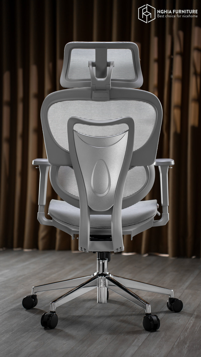 Toàn bộ phần lưng và đệm ngồi được làm từ lưới Đài Loan nhập khẩu, nổi bật với độ thông thoáng, đàn hồi cao và độ bền vượt trội. Chất liệu này giúp người ngồi luôn cảm thấy mát mẻ, không bí bách kể cả khi làm việc trong môi trường nóng hoặc phải ngồi nhiều giờ liền. Lưới căng chắc, ít xẹp lún – đảm bảo độ bền lâu dài và dễ dàng vệ sinh.
