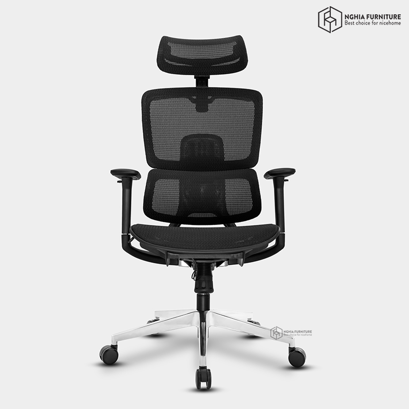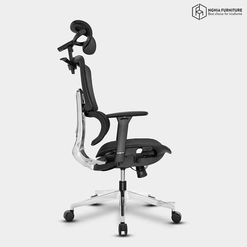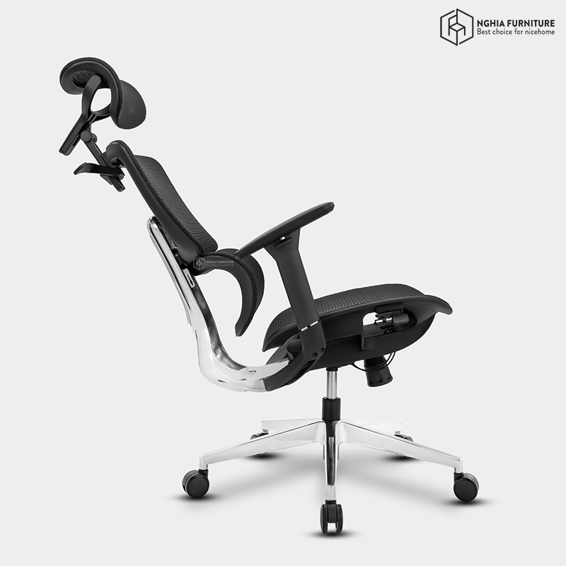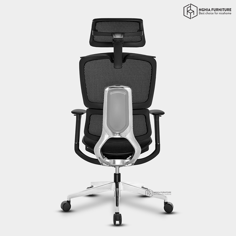 Ghế được thiết kế với phần khung tựa lưng bằng nhôm đúc chắc chắn, mang lại sự cứng cáp và độ bền vượt trội. Phần khung thân dưới sử dụng nhựa PA cao cấp, đạt tiêu chuẩn nhựa văn phòng quốc tế, đảm bảo khả năng chịu lực tốt và độ bền lâu dài. Sự kết hợp giữa khung nhôm và nhựa PA giúp ghế vừa bền chắc, vừa giữ được vẻ ngoài hiện đại, tinh tế.