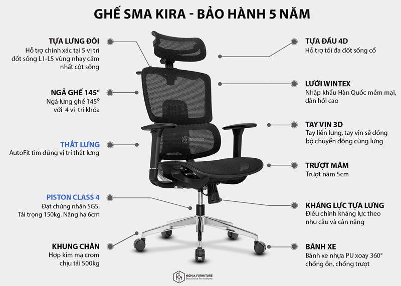 Kira không chỉ là một chiếc ghế để ngồi, mà là giải pháp công thái học toàn diện cho dân văn phòng, game thủ hay bất kỳ ai cần làm việc nhiều giờ.