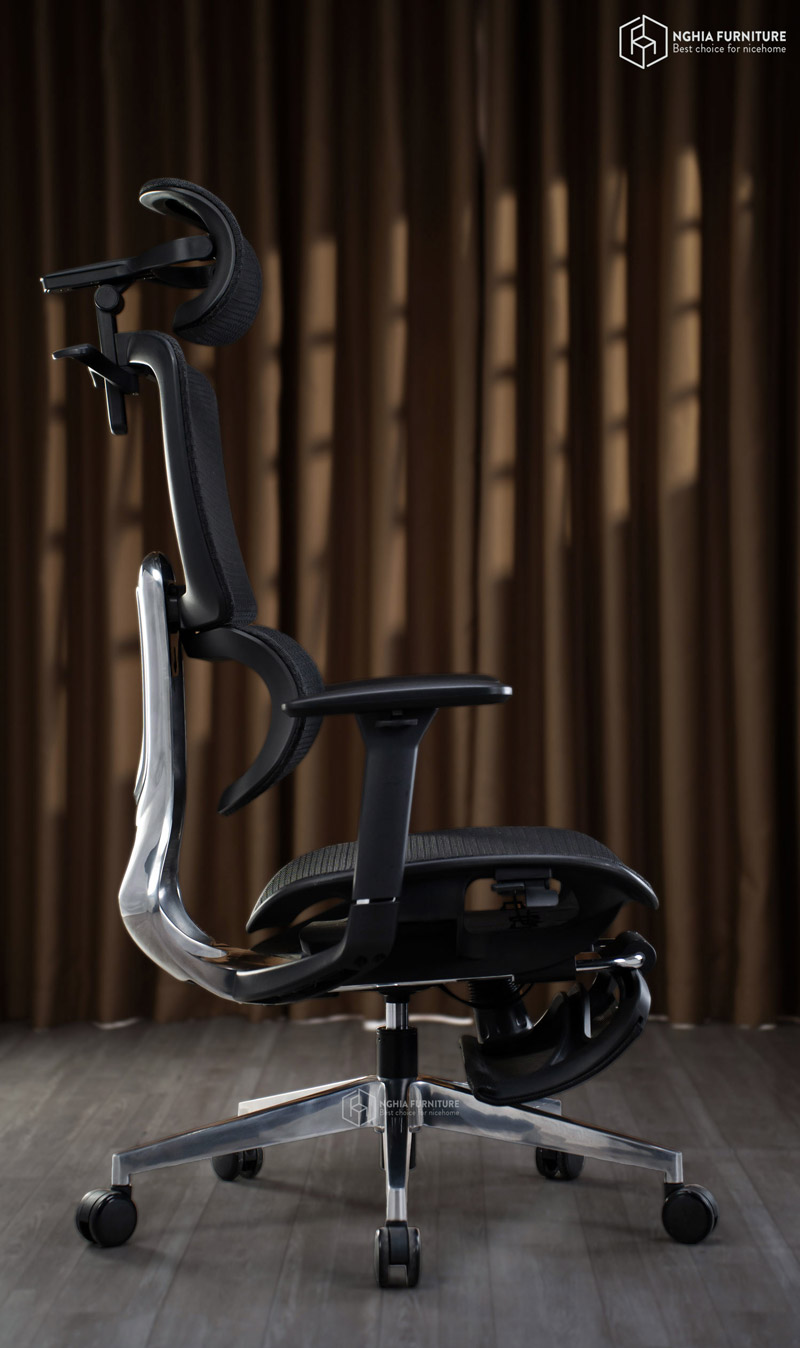 SMA Kira sở hữu thiết kế hiện đại, tinh gọn nhưng sang trọng, phù hợp từ văn phòng chuyên nghiệp đến góc làm việc tại nhà. Điểm nhấn nổi bật nằm ở khung lưng nhôm đúc cao cấp – vừa cứng cáp chịu lực tốt, vừa mang lại tổng thể mạnh mẽ nhưng vẫn mềm mại nhờ các đường bo góc tinh tế.