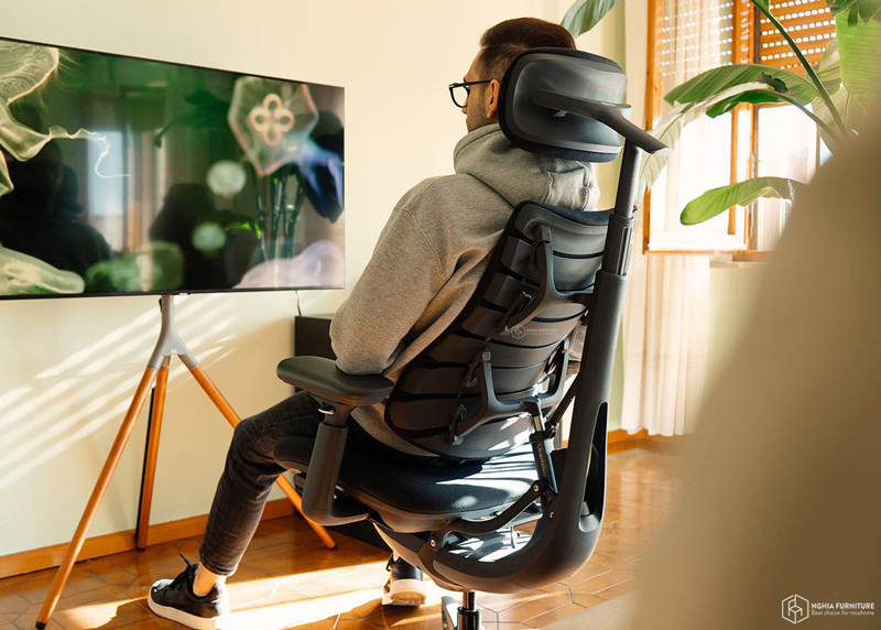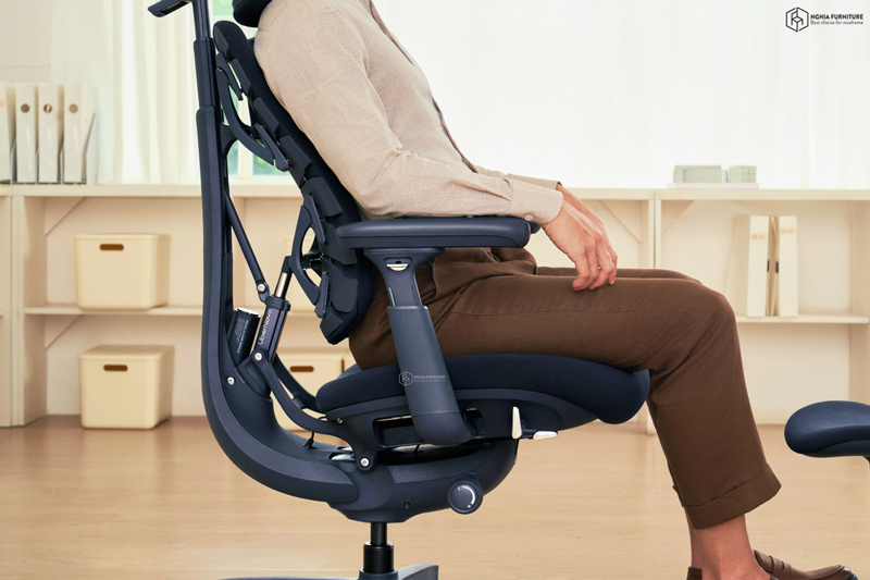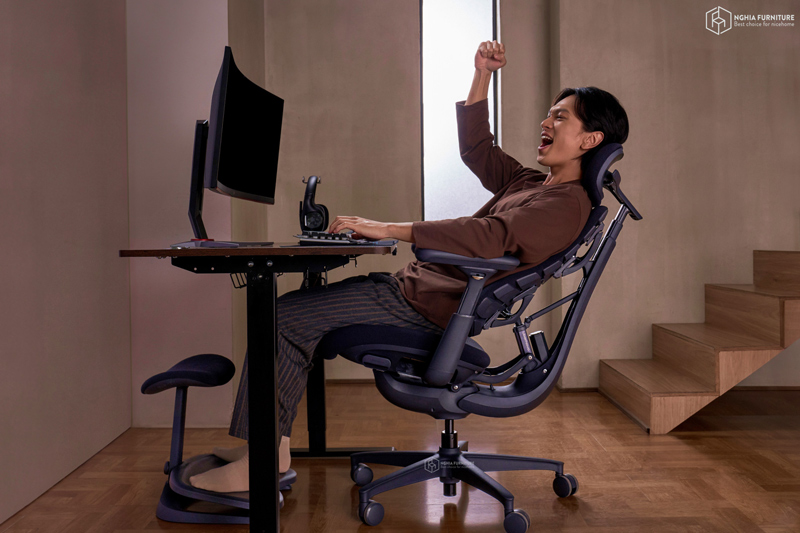 Ở góc 105°–115°, ghế hỗ trợ tư thế ngồi thẳng, giúp tăng sự tập trung. Khi chuyển sang 120°–135°, cơ thể được thư giãn hơn, phù hợp với các hoạt động sáng tạo. Và ở mức ngả tối đa 160°, ghế mang lại cảm giác nghỉ ngơi sâu, giảm áp lực toàn diện lên cột sống.
