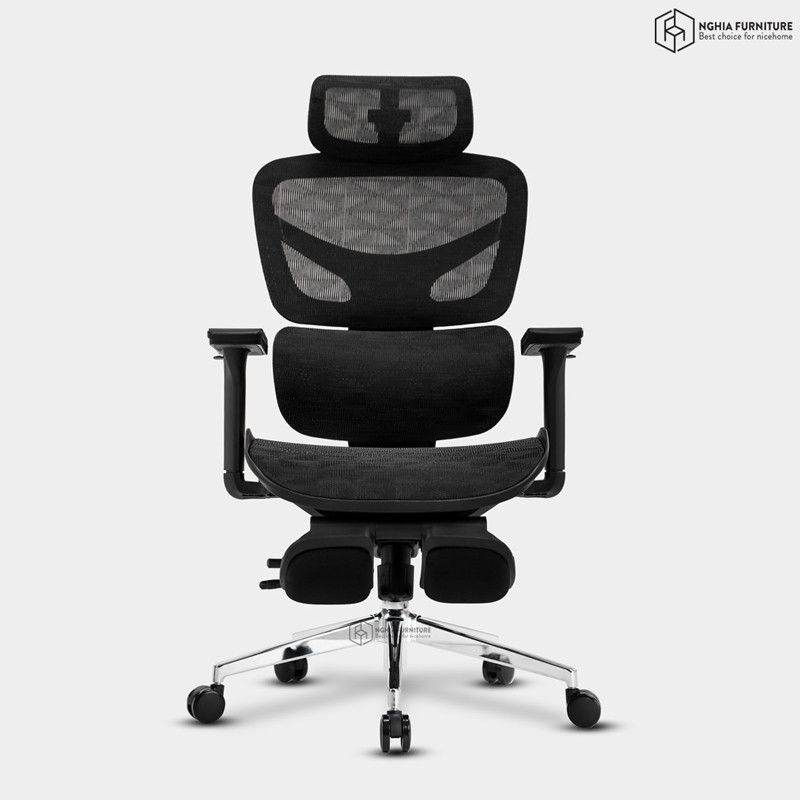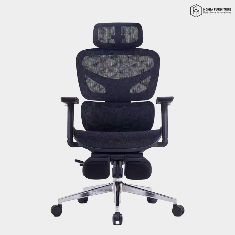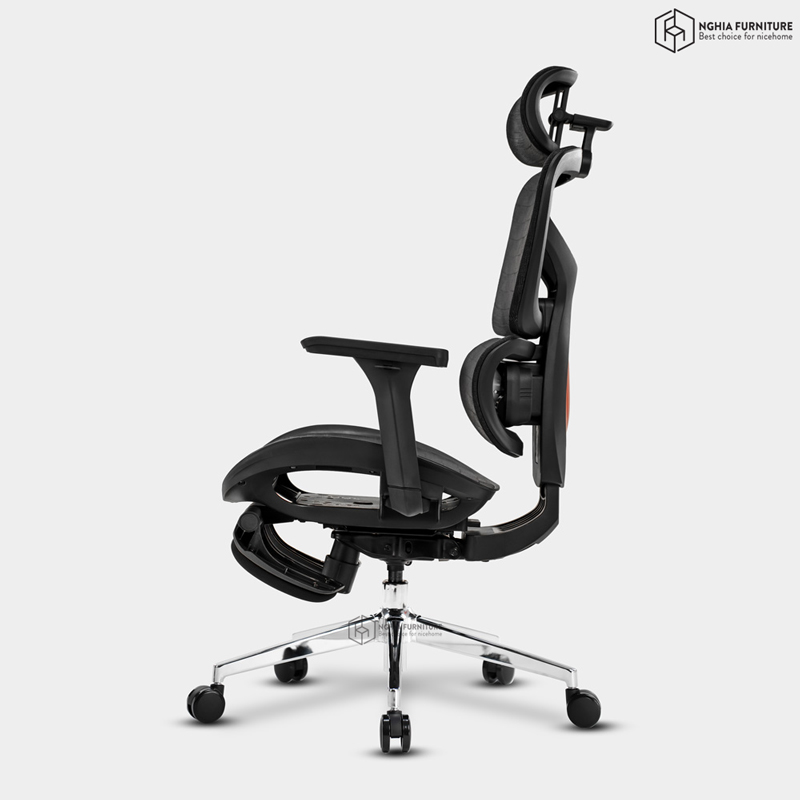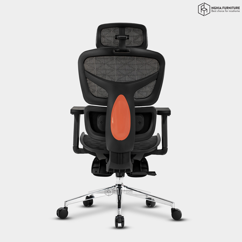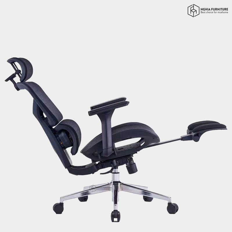 Tựa đầu có thể tăng giảm độ cao, nghiêng trước/sau và xoay theo hướng cổ, giúp đỡ trọn vẹn vùng gáy – đặc biệt quan trọng với người thường xuyên họp online hoặc làm việc ở tư thế ngửa cổ.