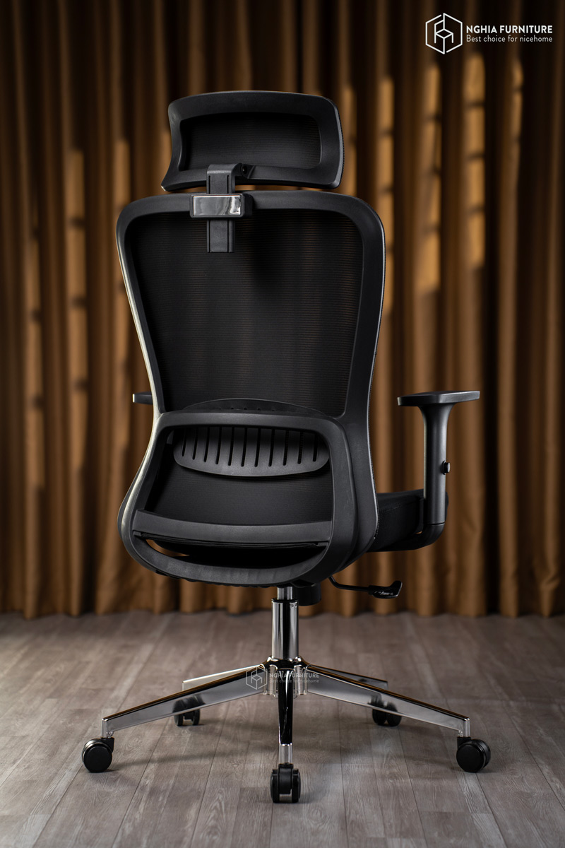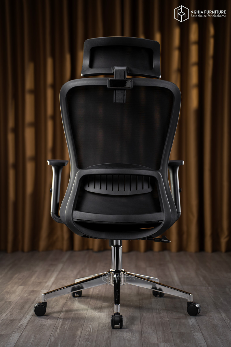 Lưng ghế lưới cao – thoáng khí, giúp tản nhiệt nhanh, hạn chế hầm lưng khi ngồi lâu.
