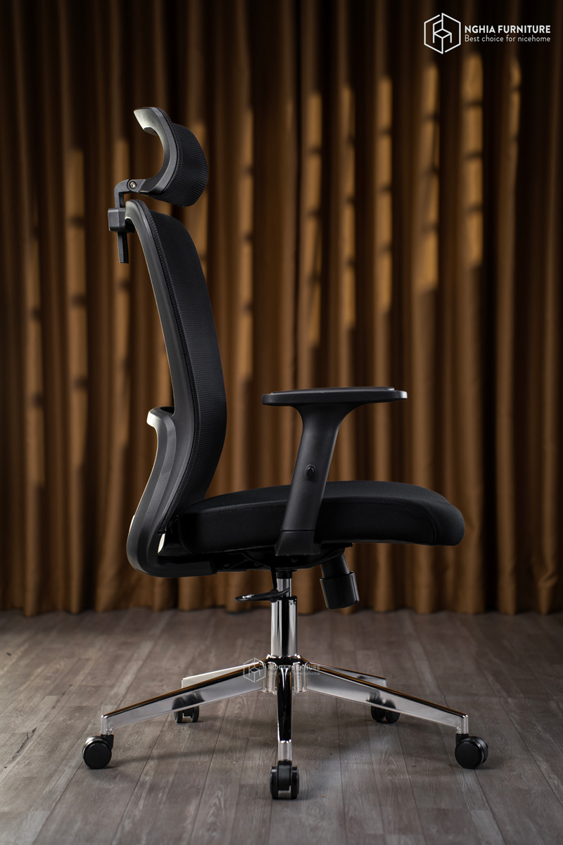 Tựa đầu 1D có thể điều chỉnh độ cao, hỗ trợ cổ và gáy, giảm mỏi vai khi làm việc dài giờ.