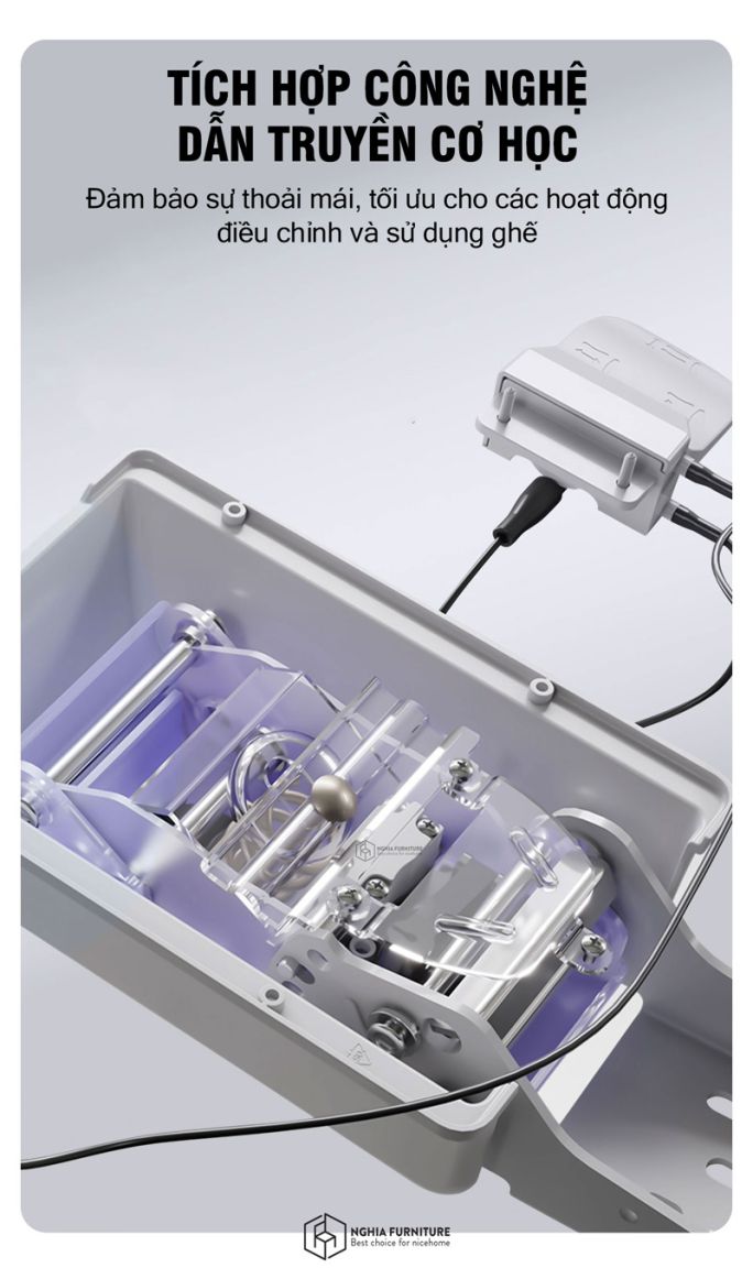 Phần nệm rộng 51x51cm, thiết kế dạng bo cong thác nước, hỗ trợ phân tán áp lực, giảm tê chân khi ngồi lâu. Đồng thời, phần đệm có thể trượt ra – vào 5cm, giúp điều chỉnh độ sâu phù hợp với từng dáng người.